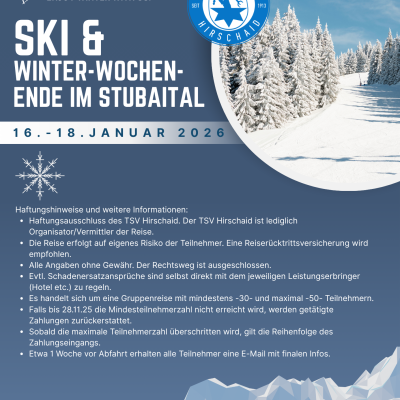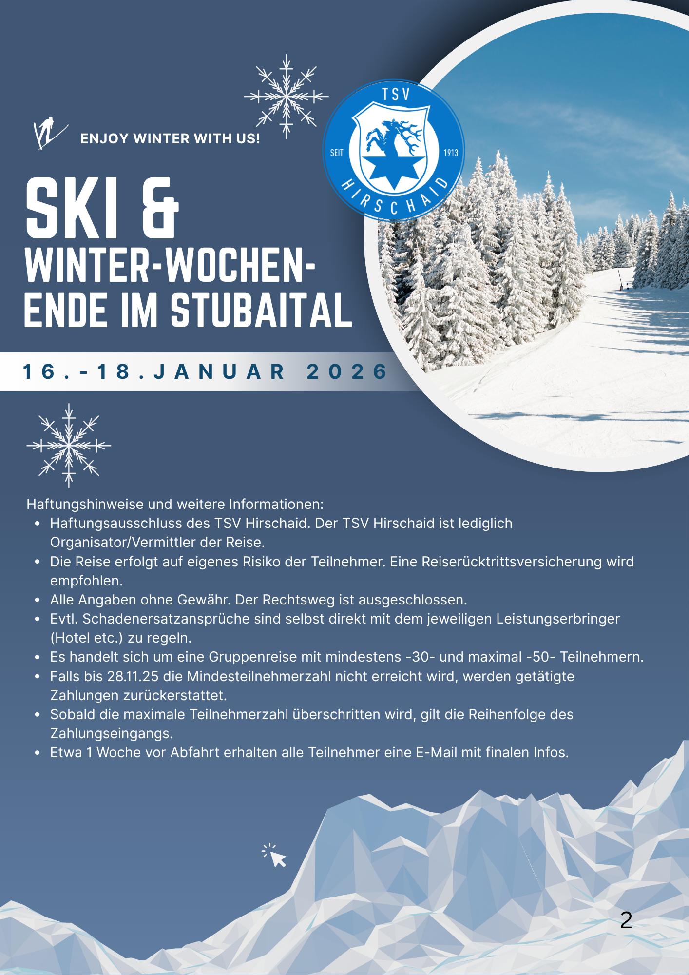 Haftungsausschluss des TSV Hirschaid. Der TSV Hirschaid ist lediglich Organisator/Vermittler der Reise.