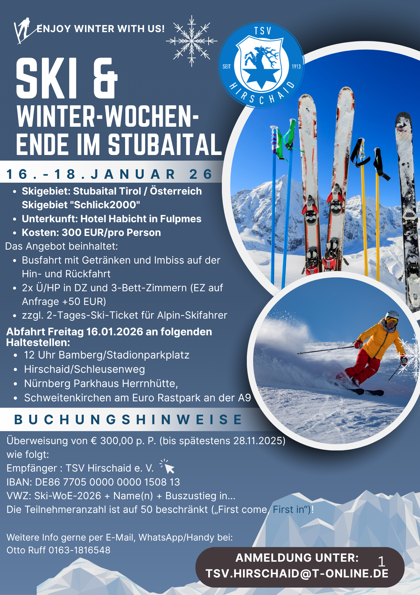• Anmeldung bitte per E-Mail an: TSV.Hirschaid@t-online.de