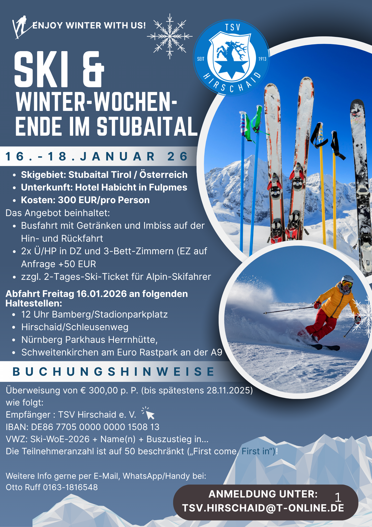 - Anmeldung bitte per E-Mail an: TSV.Hirschaid@t-online.de